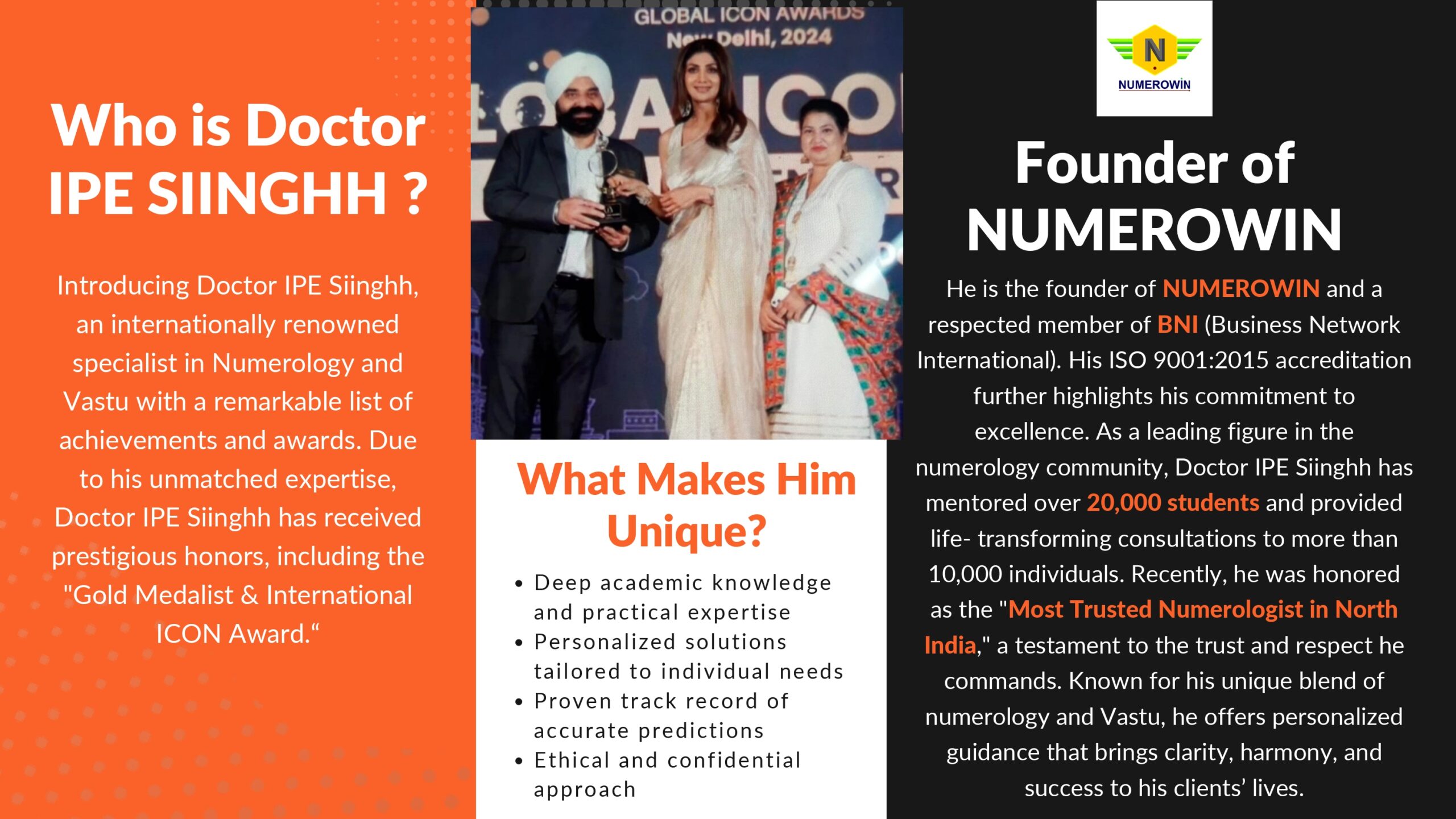 Dr. IPE Siinghh brings a unique blend of knowledge and numerological expertise, offering a scientific and holistic approach to numerology.